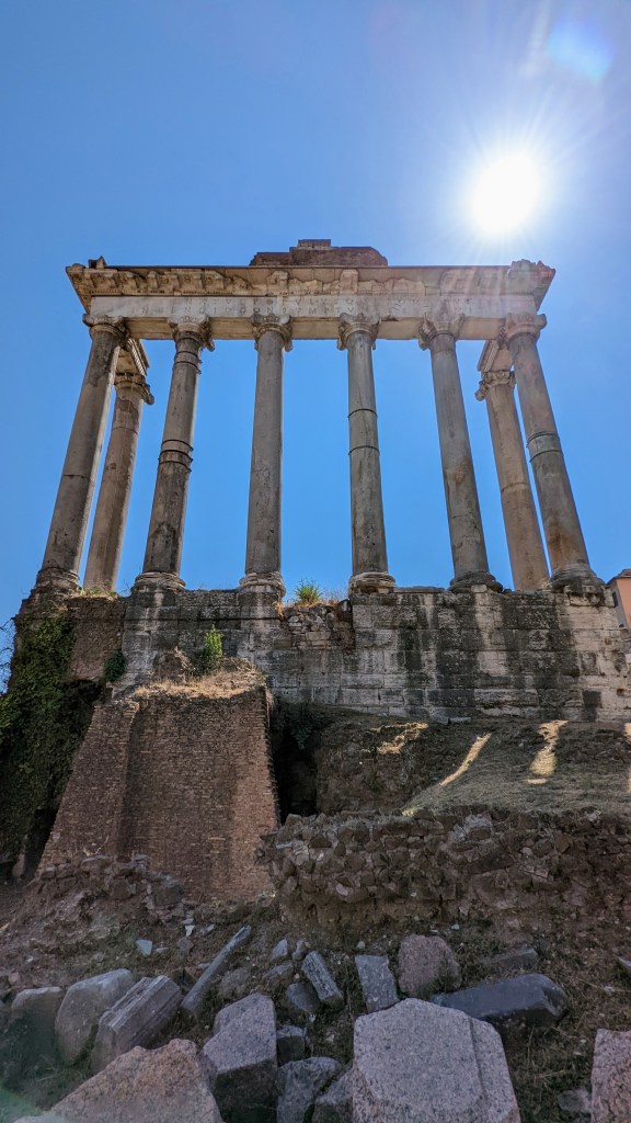 Descendant la Via Sacra, j’ai contemplé les temples dédiés à Vesta, Saturne avant d’arriver au forum romain.