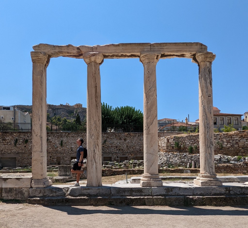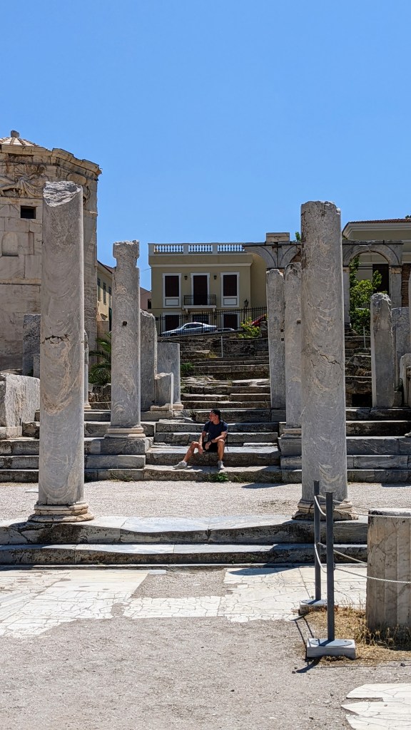 Sur place, j’ai pu imaginer la grandeur que souhaitait l’empereur romain Hadrien en 132 apr. J.-C.. Voulant reconstruire Athènes, il bâtît une bibliothèque faisant forte impression avec pas moins de 100 colonnes à son entrée.
