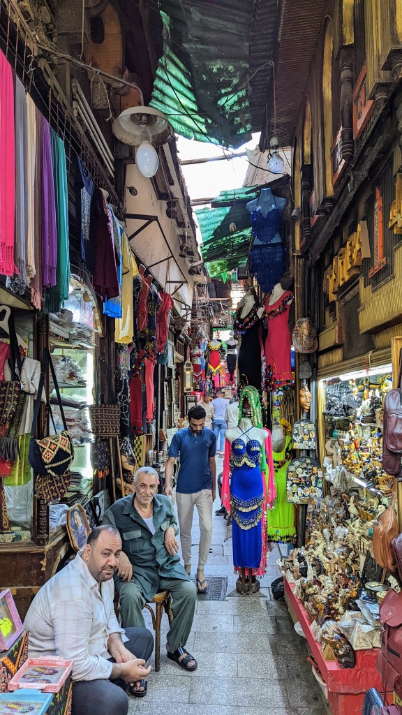 J’ai visité le souk de Khan Al-Khalili. Il est très coloré et il y a beaucoup de monde.