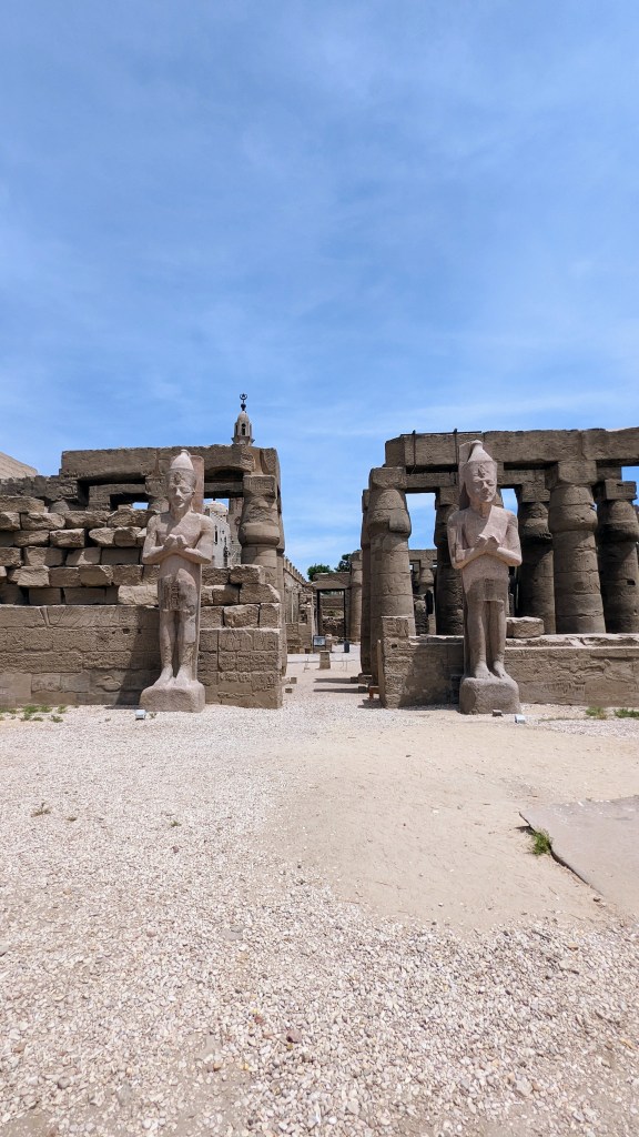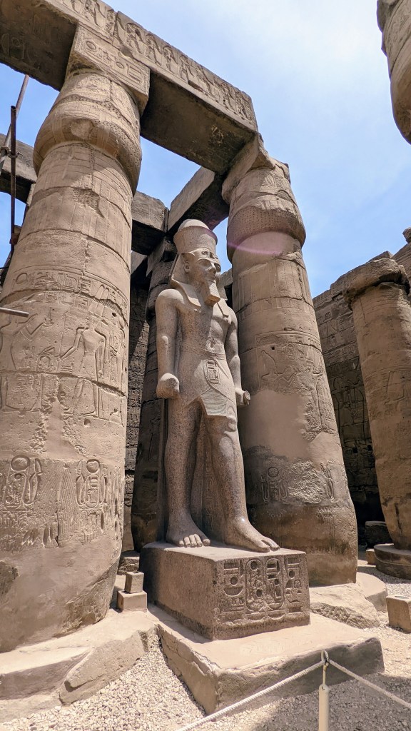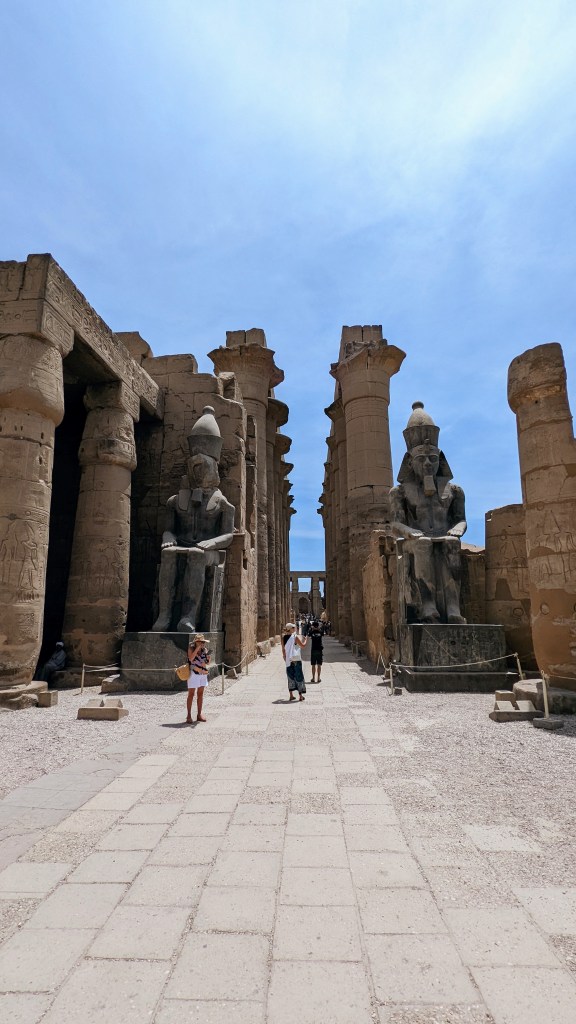 Pour moi, c’est l’un des plus beaux… Il est super bien conservé, notamment parce qu’il était sous le sable pendant plusieurs siècles. Dans le temple de Louxor, il y a à l’entrée; l’entrée du temple égyptien, l’entrée d’une église et l’entrée d’une mosquée les unes sur les autres puisqu’elles étaient enterrées au fur et à mesure du temps par le sable. Les fondations égyptiennes étaient utilisées pour des monuments.