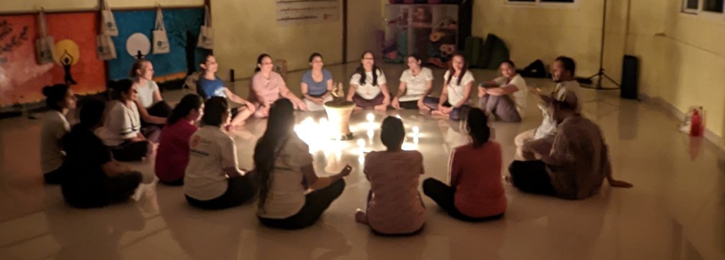 Pour comprendre un peu l’ambiance sur place… Il faut intégrer le planning des cours avec un réveil à 5h du matin pour commencer la journée avec des chants, des mantras et un entrainement Hatha-yoga qui suit. Directement dans la foulée se déroule les cours de Pranayama qui sont des exercices de respiration. Tout ceci se déroule à jeun.
