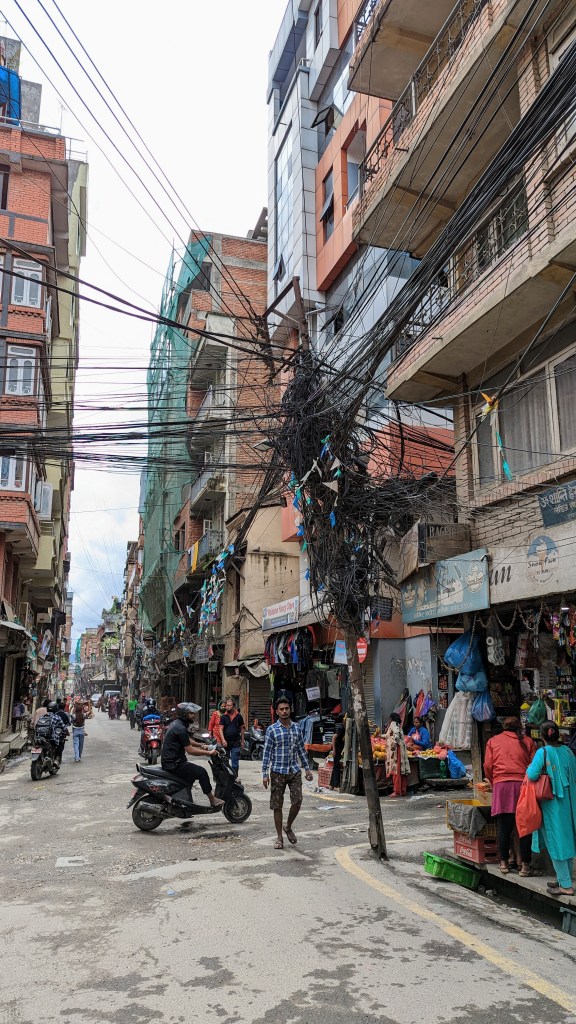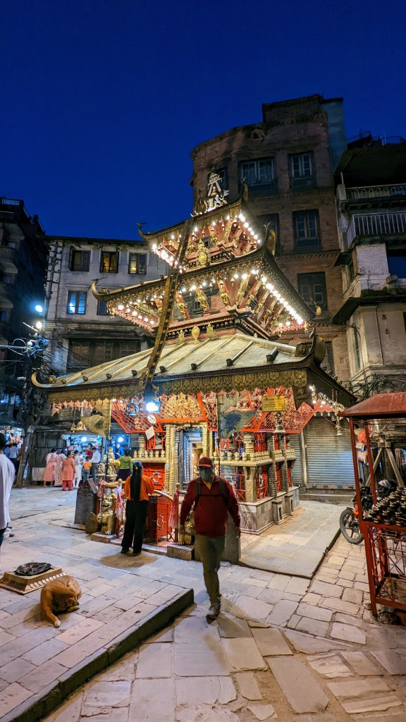 Le quartier historique de Thamel est incontournable pour tous les trekkers. Nombreux restaurants permettent de manger très correctement. La nuit, il y a des bars et des boites de nuit. Il y a moyen de faire toutes ses emplètes pour des treks à des prix défiants toute concurrence… Toutefois, la majorité des produits sont des copies… Attention aux arnaques ! J’ai aimé me balader un peu plus loin. On trouve de nombreux temples et d’endroits très sympathiques.