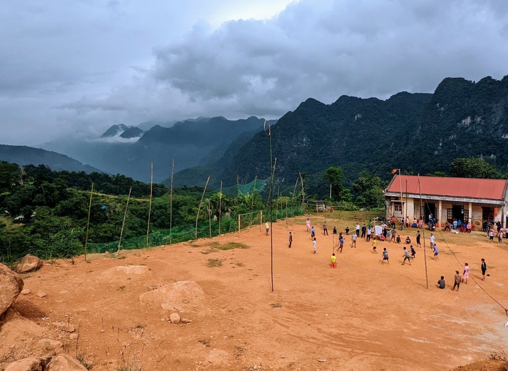 Perché au milieu des montagnes, on s’arrête et découvre un mini-marché; 3 personnes avec des scooters qui vendent des aliments, des vêtements… En contre-bas, un match de volley se déroule ainsi que quelques concours. L’atmosphère est dingue, paisible, le goût des choses simples.