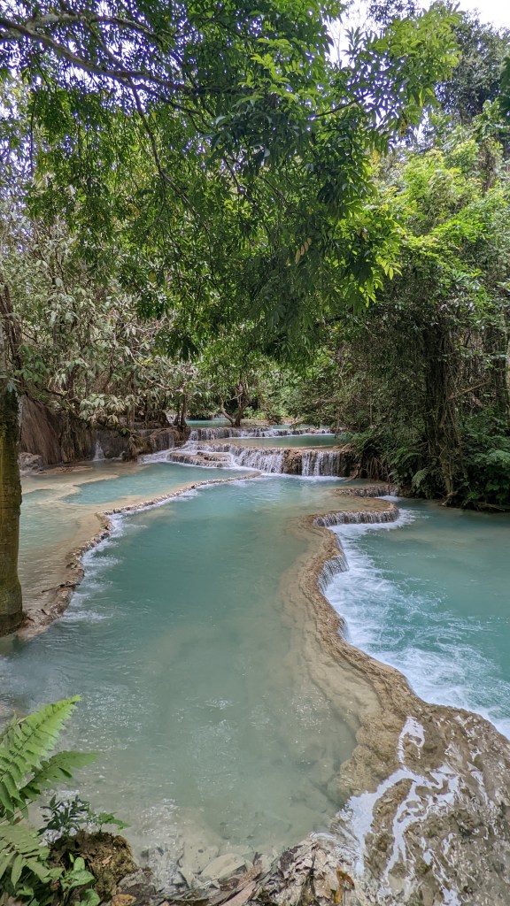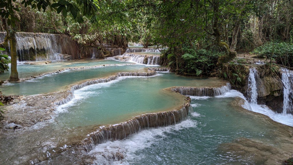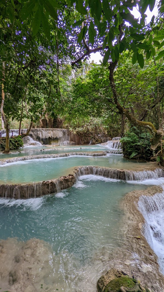 Il y a de belles choses à voir dans la ville… L’ambiance est paisible, les monastères et les temples bouddhistes sont nombreux… cela rend la ville très sympathique avec les moines souriants qui se baladent et font sonner les gongs à 16h. Mais ce que j’ai préféré, c’est la kuang Si Waterfall, moment incroyable !