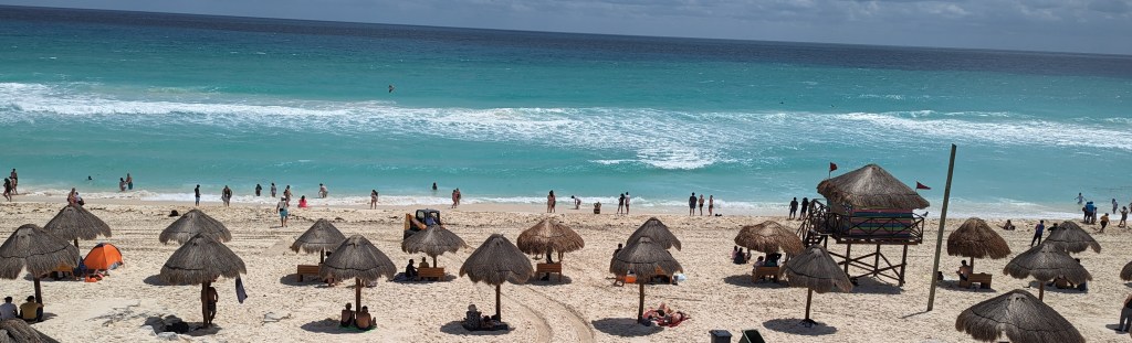 Pas de photo, mais je livre ici un récit dingue qui m’est arrivé quand je suis arrivé à Cancun. J’ai réservé un dortoir à l’écart de la ville. Moment un peu fou quand j’arrive… L’hébergement est rempli de migrants venus d’Inde… Personne ne parle anglais ou espagnol… Le maitre des lieux s’excuse auprès de moi expliquant que tout a été réservé pendant 1 mois et qu’il reste juste un lit. Je tente de discuter avec les gens sur place… Comprenant qu’ils attendaient un « boat America », je vous laisse imaginer l’ambiance… C’est un peu le bordel; ils restent là toute la journée à fumer, boire, se battre… Je ne me sens pas en sécurité. Je décide de quitter les lieux après 2 nuits (tout de même) pour aller dans la zone des hôtels le long des plages…