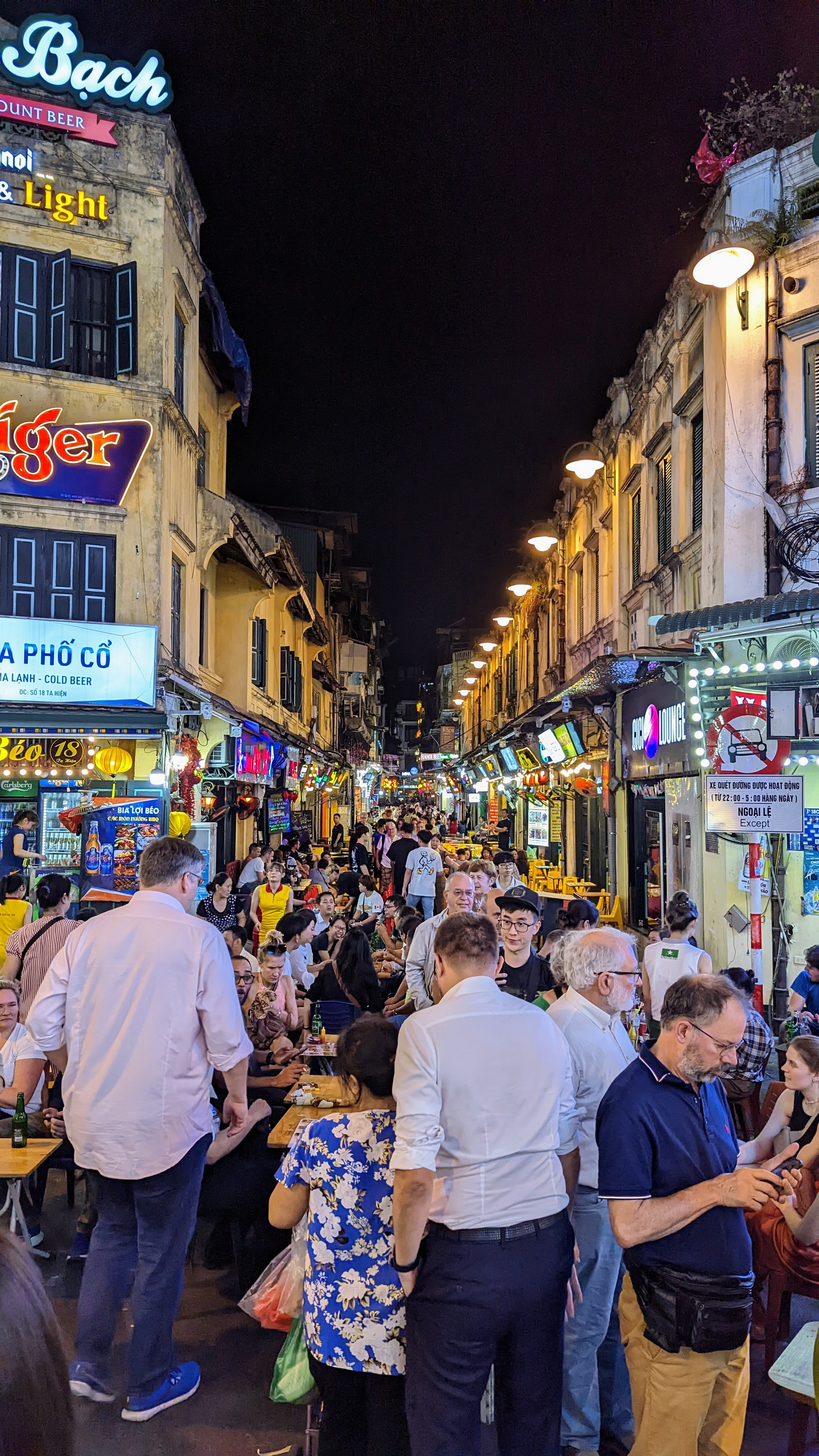 Je me suis fait arrêter par la police ! Pas au courant que la rue est réglementée (heures d’entrée, entrée payante), je suis monté sur les rails via une échelle d’un chantier… J’ai longé les rails avant d’être arrêté par un policier… Heureusement, un commerçant m’a proposé de m’asseoir dans son échoppe où j’ai dégusté un egg chocolate.